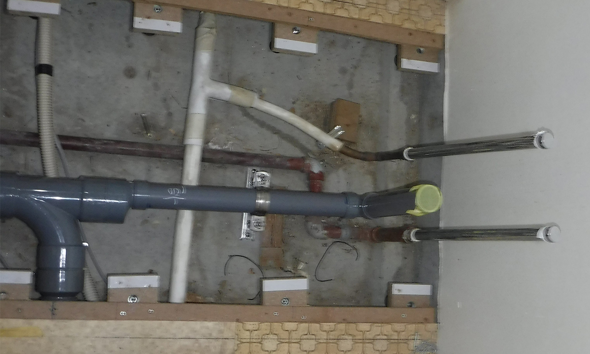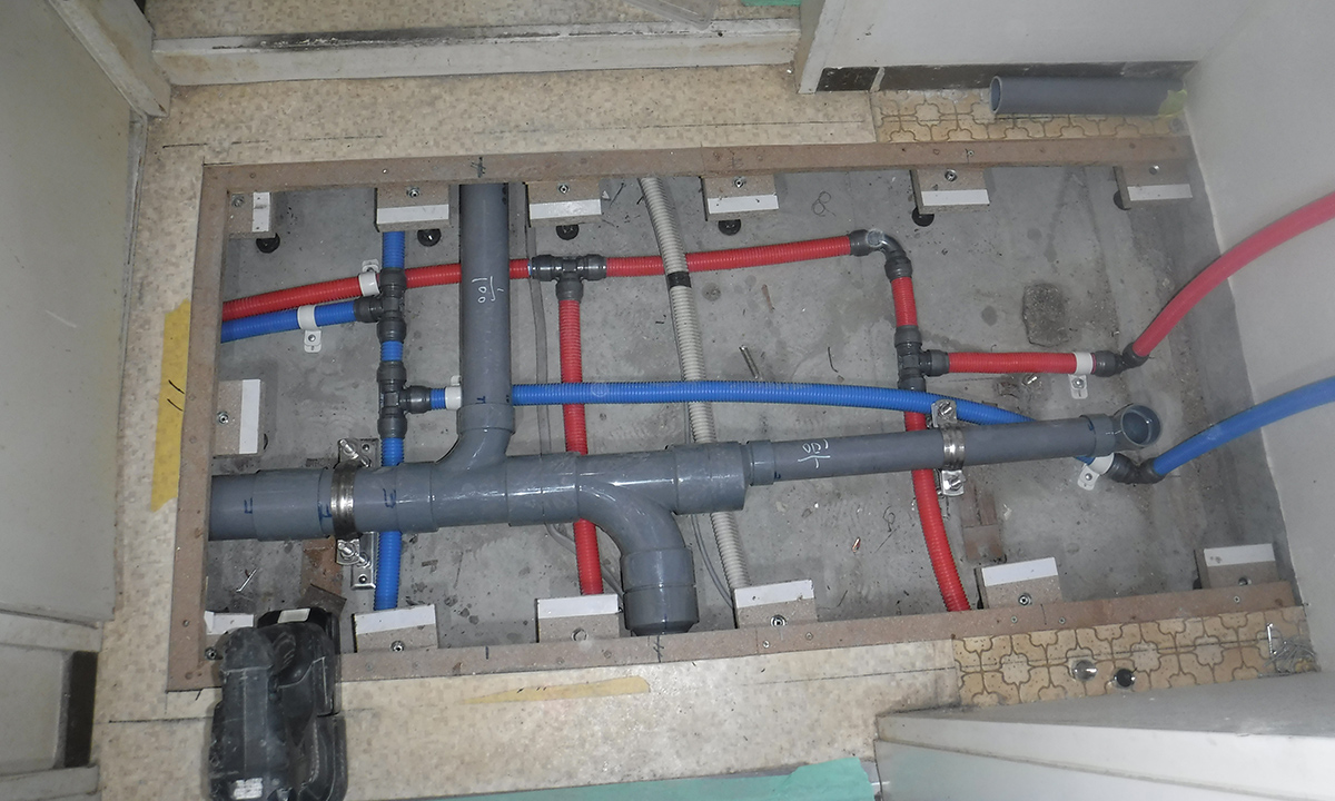 集合住宅の専有部において、老朽化した給水・給湯配管の改修工事を行っています。