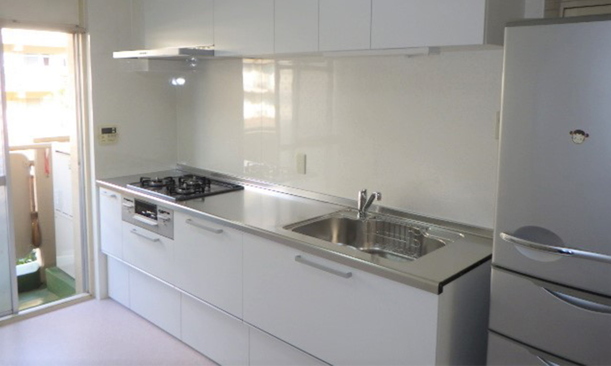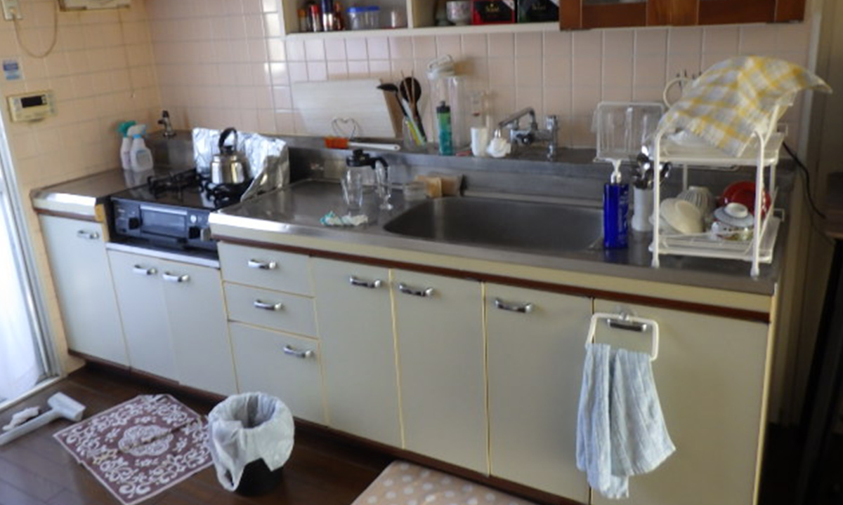 - 建築当初から設置されているブロックキッチンからシステムキッチンへ交換工事を行いました。
