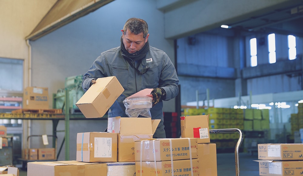 当社の新木場配送センターは都内の他の拠点では類をみない7,000坪という敷地面積を誇ります。その敷地面積を活かし、約20,000アイテムもの在庫を常備し、幅広い資材の集約を行うことで現場への一括配送を可能としています。