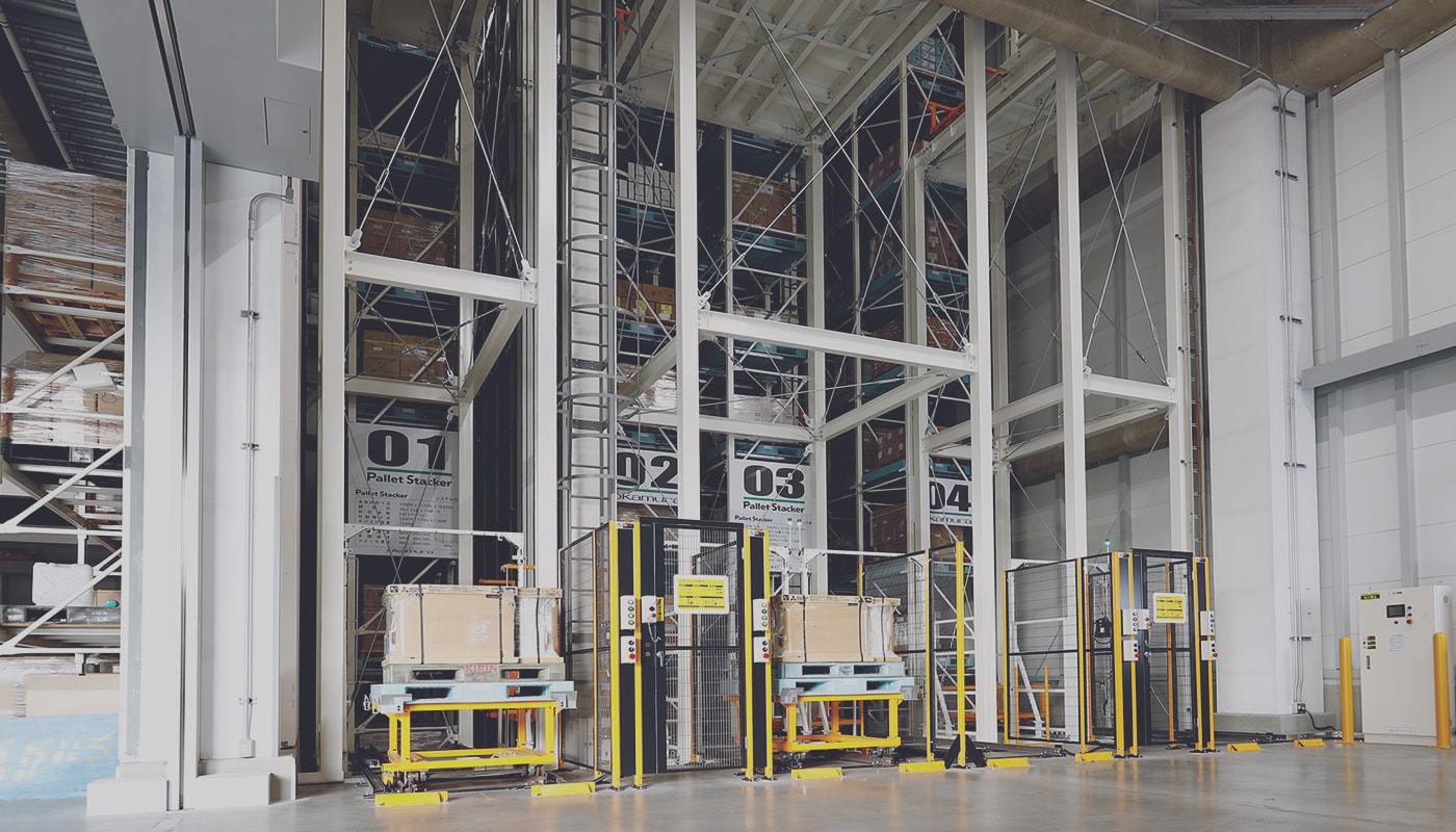 1,048パレットコンピューター制御による機械式パレットスタッカーの導入で、