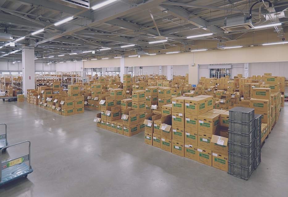 敷地面積5,500㎡、延床面積10,000㎡の広さで、30,000アイテム以上のストックが可能です。