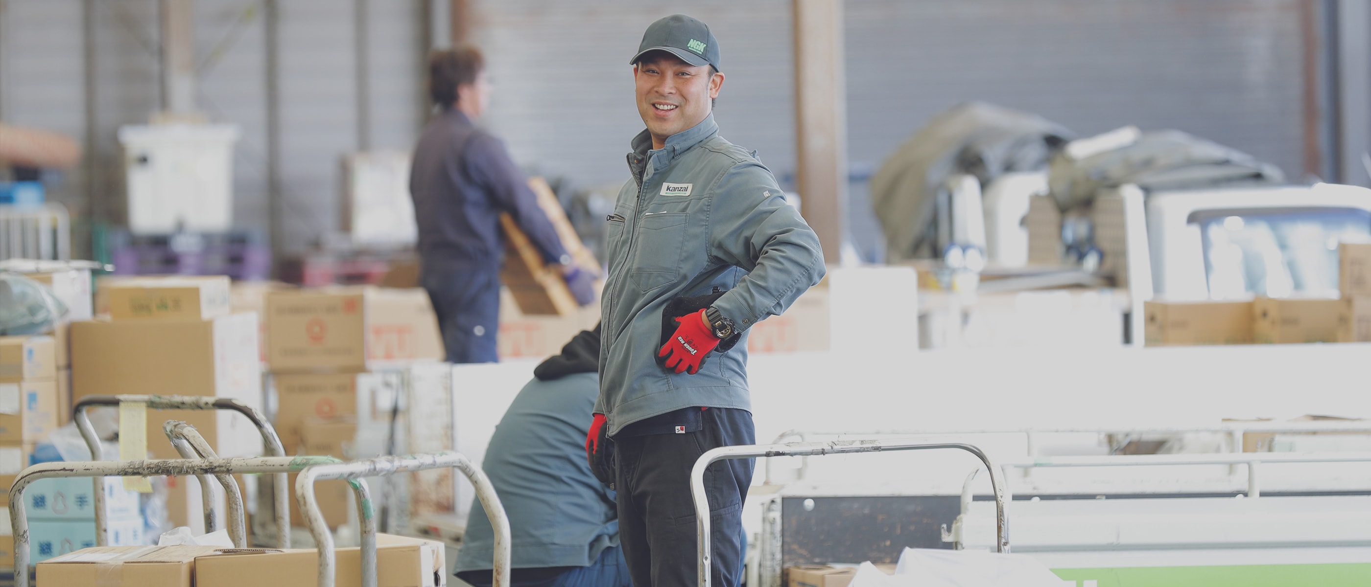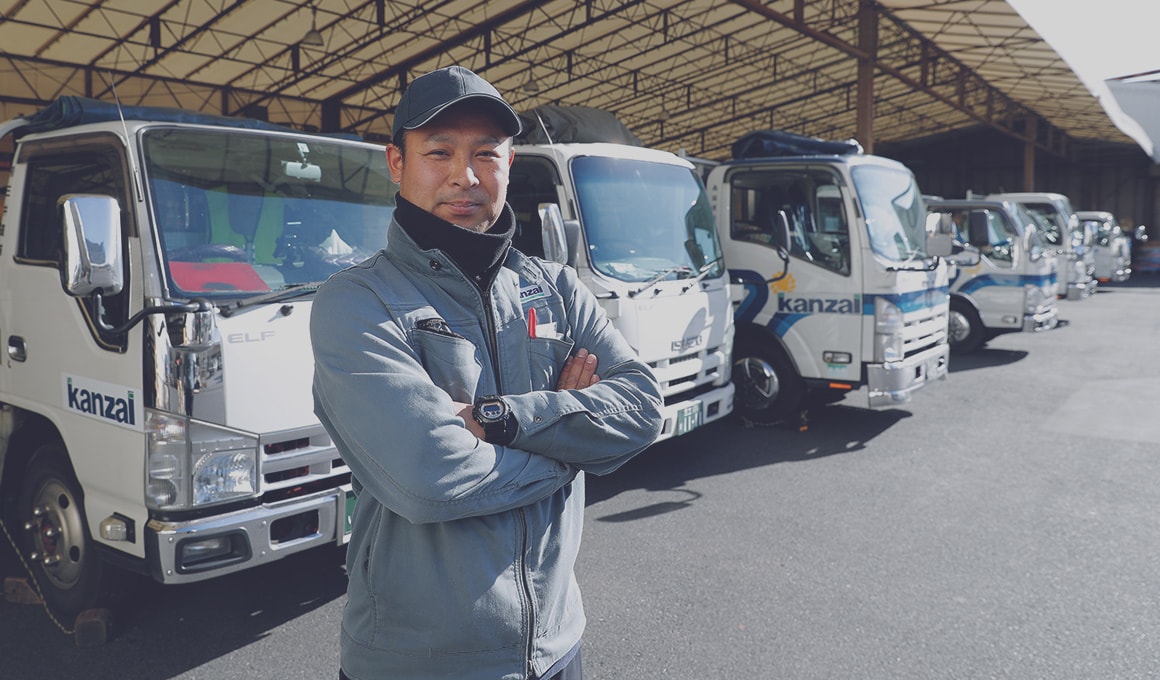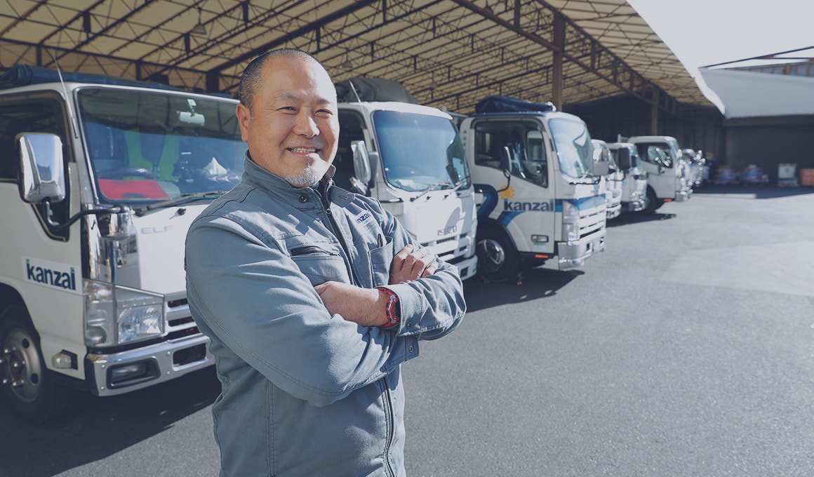 しかし、それだけではkanzaiのロジスティクスは成り立ちません。膨大な量の積み荷を指定された時間に正確にお届けするには、やはりドライバーの熟練した運転技術と、日々変わる交通事情への柔軟な対応力が欠かせません。また、荷物の最終チェックをドライバーが行うことで配送ミスを防ぎ、無駄のない効率的な配送を実現しています。創業以来、東京を中心とした建設現場に資材を納入し続けてきたドライバーたちの実績とノウハウが受け継がれ、今日に活かされているのです。
