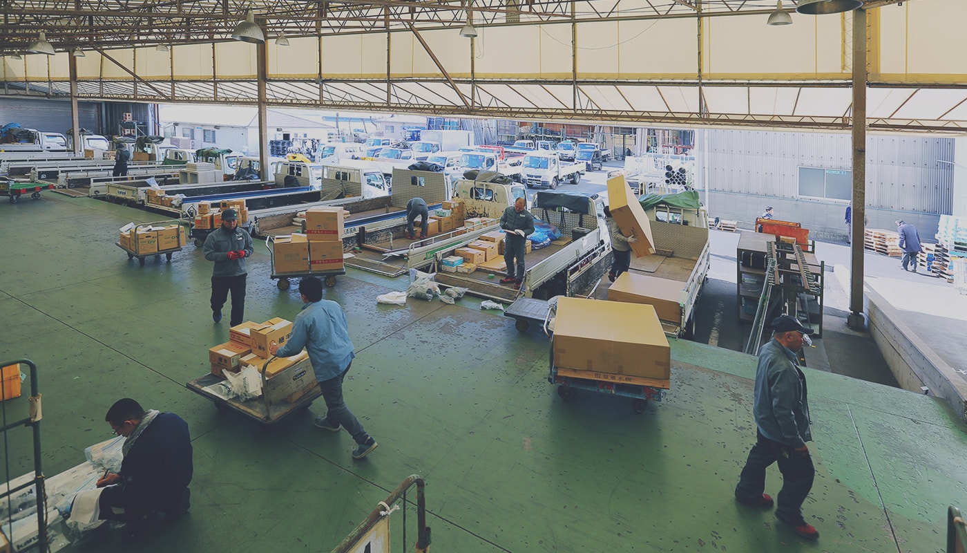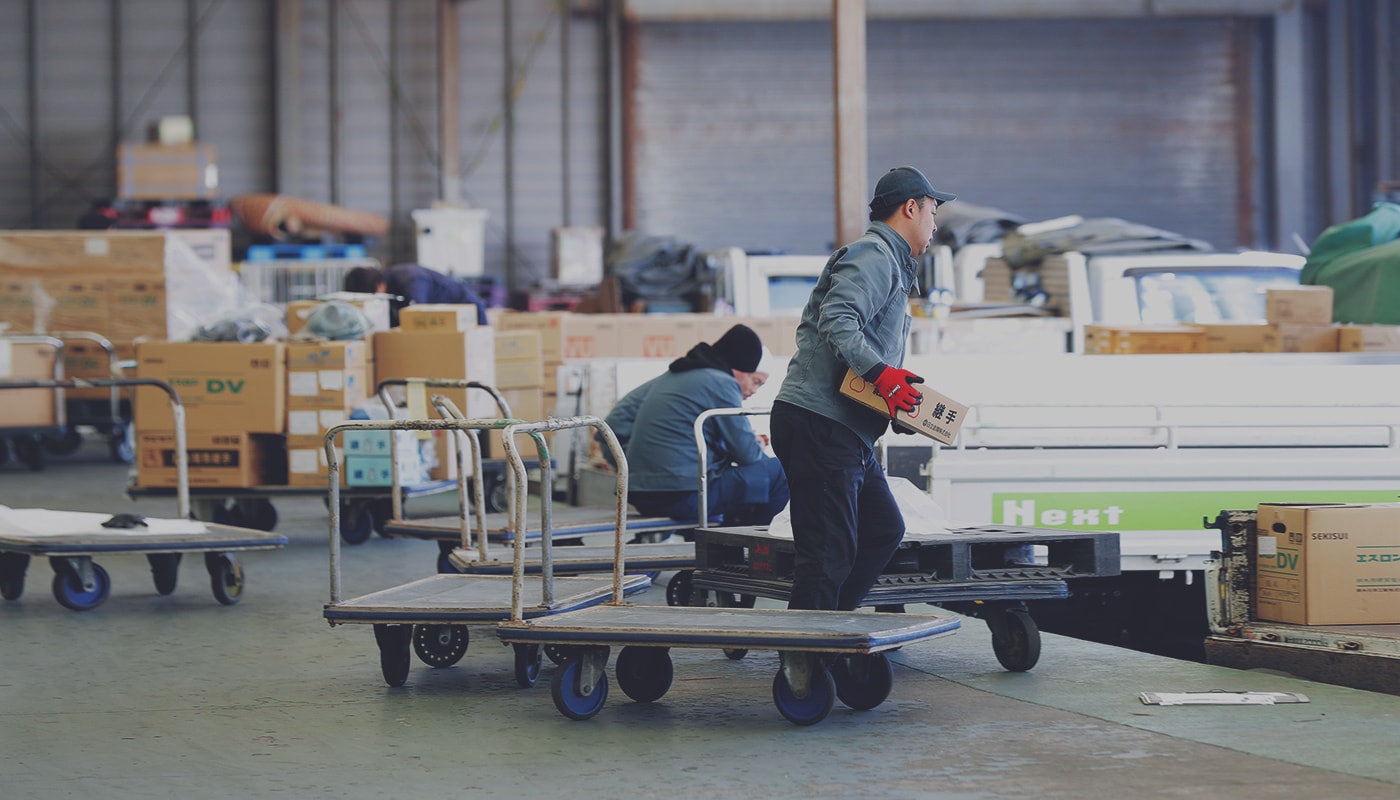 ドライバー自ら荷物を確認し、スムーズに配送するためにトラックに積み込みます