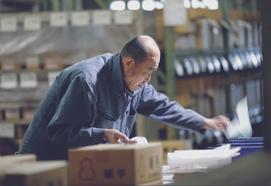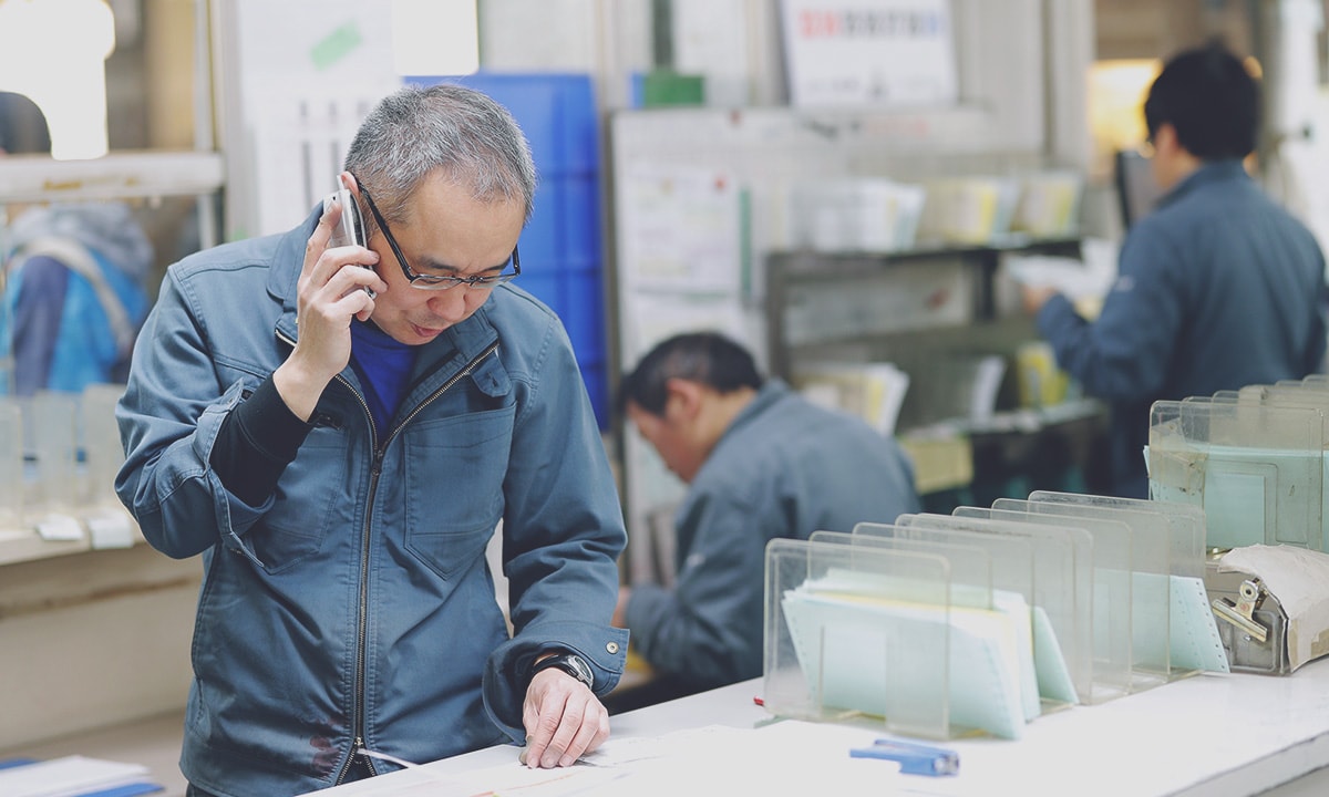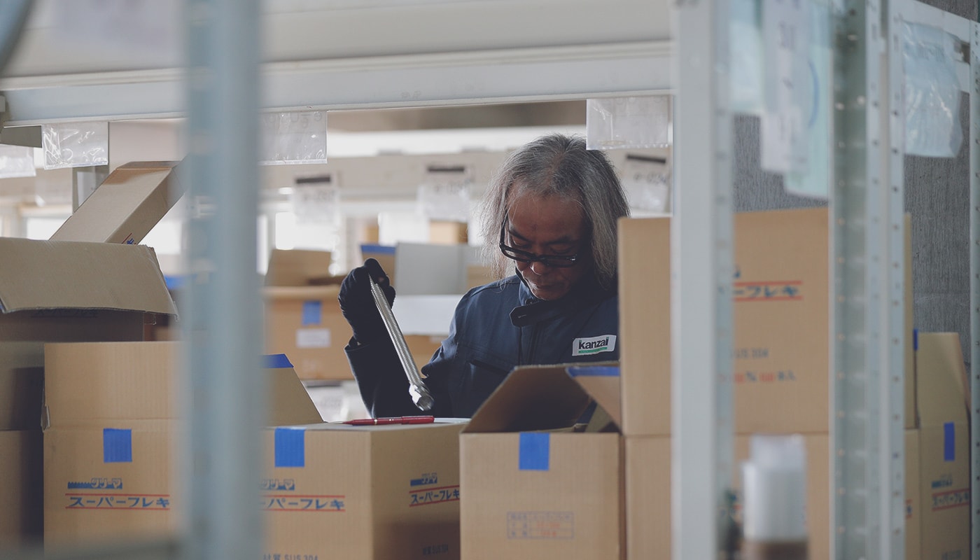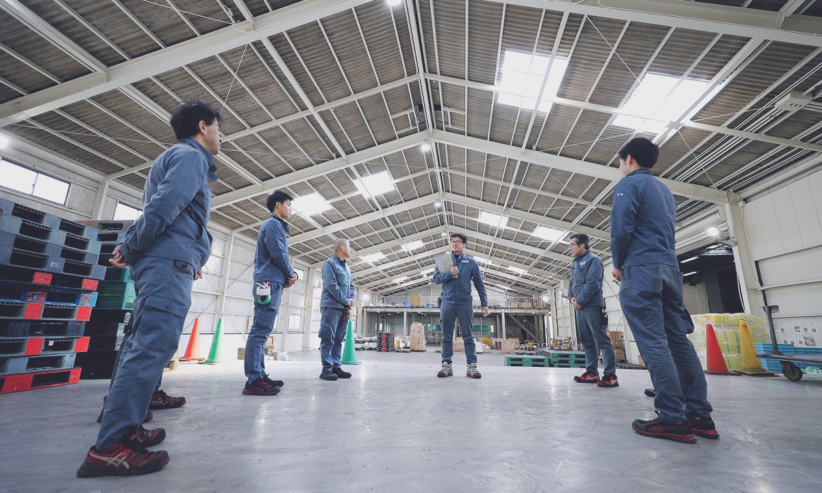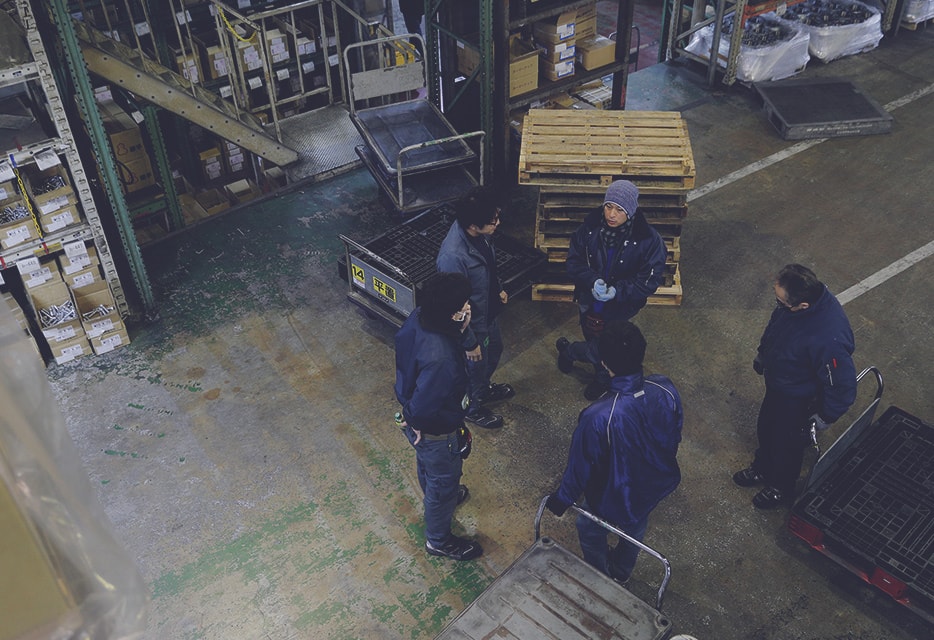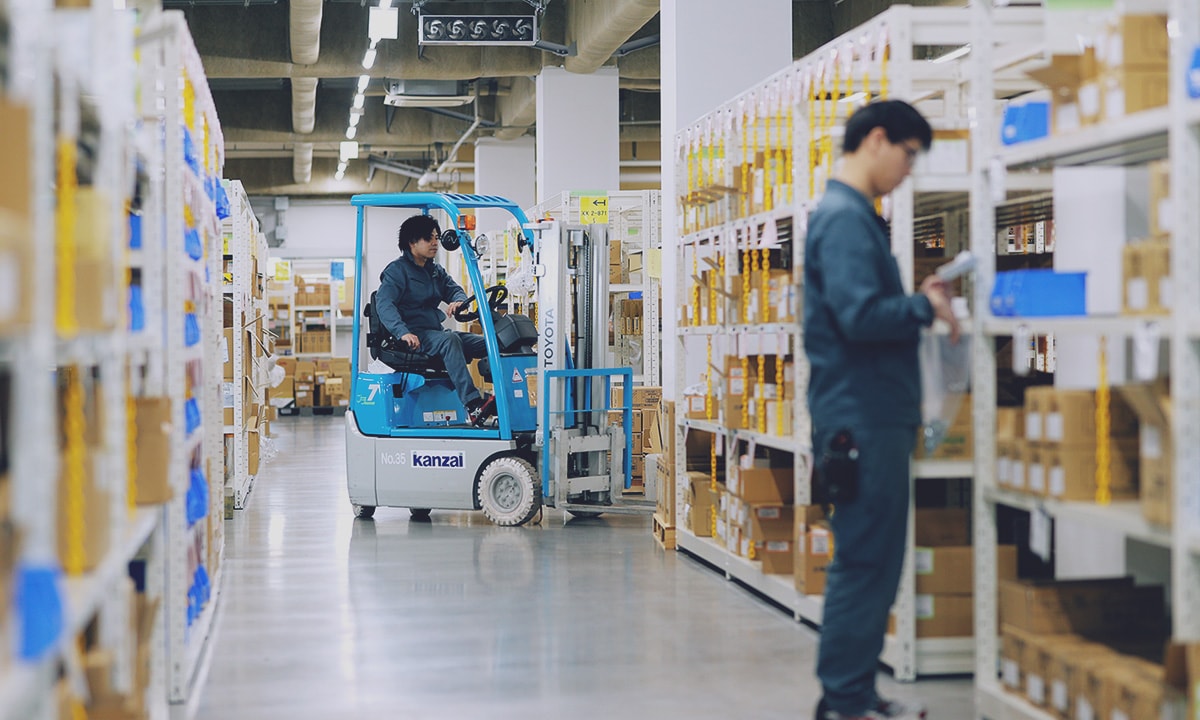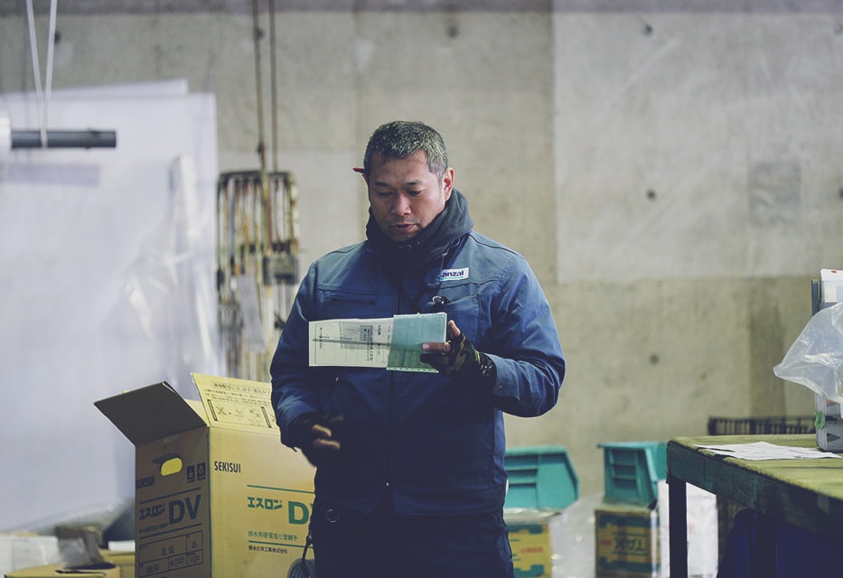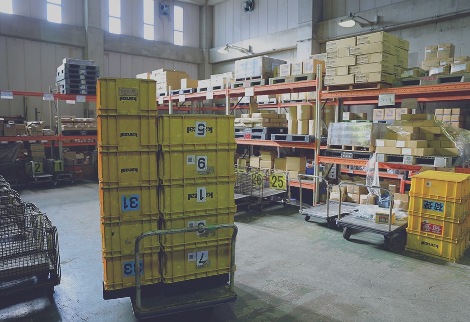 7,000坪超という広大な敷地面積に、常時約20,000アイテムを在庫しています。あらゆる建築設備向けの配管材料を在庫しているので、個別に頼まなくても1ヵ所で間に合います。多くのアイテムを必要とする現場からの発注にも対応できます。まさに「必要な分だけを必要なときに発注」を可能にします。また、配送センターは江東区新木場にあり関東地方を扇形に見なした要に立地しているため各高速道路へのアクセスが容易となり、配送車輌約100台が、日々1,600ヵ所の工事現場への配送を実現しています。
