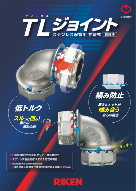 「驚愕の低トルク」「信頼の緩み止め」「安全な継手構造」「確実な施工確認」が特長のステンレス配管用拡管式管継手 日本水道協会品質認証センター 認証登録品 ステンレス協会規…