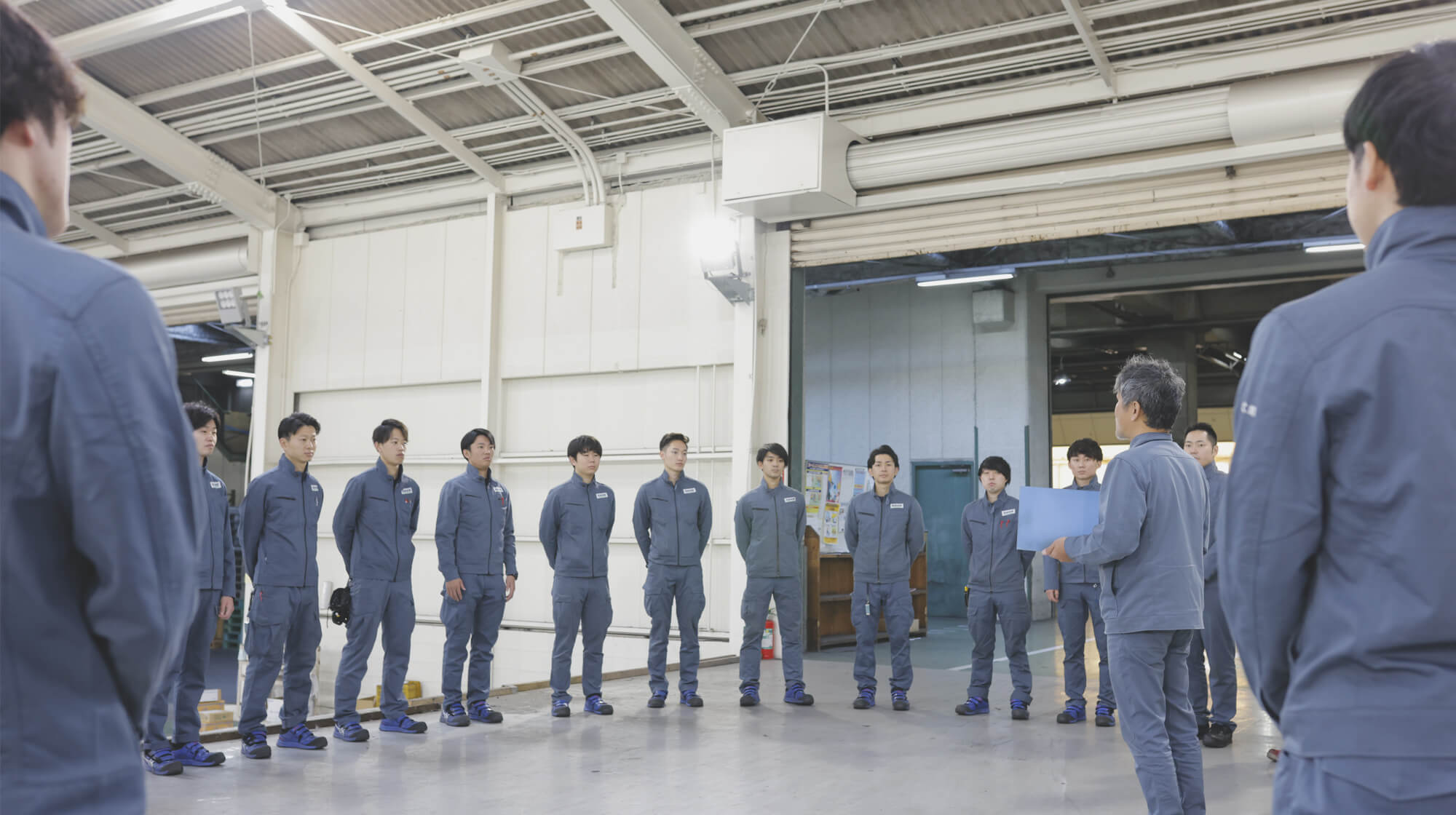 始業前には社員が集まって朝礼を行います。当日の注意事項や、スタッフの出勤状況などを共有することで、自分の担当業務や1日の流れを確認します。