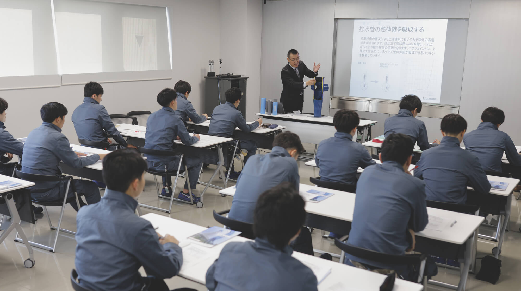 2016年に竣工した「新木場配送センターDepot」の研修ルームで、自分たちが扱っている商品の特徴や現場でどのように使われているかなどを学びます。