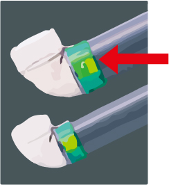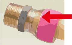管を差し込み、ナットを入れて締めると色のついた部分が隠れるような仕組みになっています。色が見えなくなるくらいに締め付ければ接合完了です。このように目視確認に色を利用した工夫は多くみられます。