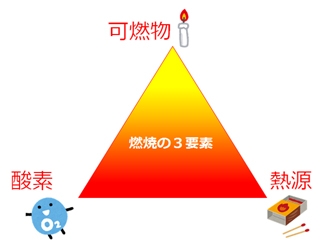 まず、火が燃焼を続けるには、<燃焼の3要素>が全て揃う必要があります。