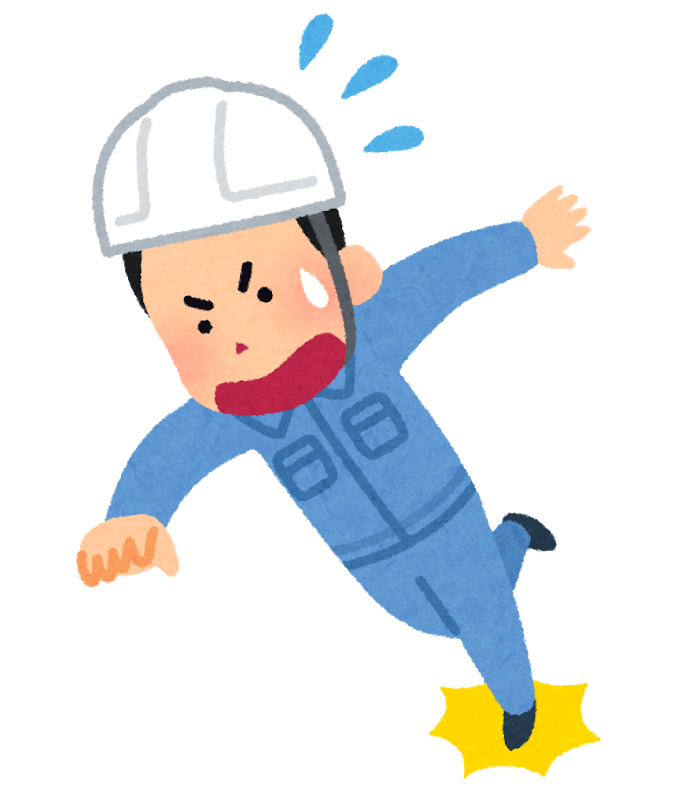 安全の基本は4S(整理・整頓・清潔・清掃)です。転倒事故は現場内においてどの場所でも起きる可能性がありますが、障害物を失くせば発生リスクを減らすことが出来ます。今回の例では、足場は段差がないように組み、特に足下には結束線や紐などのつまずきやすいようなものを放置しないことが大切です。他にも材料や工具を使った後はそのままにせず、都度、所定の置き場や工具箱に戻すように心がけることが大切です。