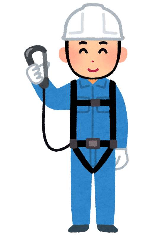 建設現場での転落事故は非常に多く、高所からの転落だけではなく脚立や階段から落ちてしまう軽微な事故も後を絶ちません。最近では立馬を推奨し、脚立は使用禁止とする現場も多くなっています。もし脚立を使用する際には、2人以上の作業とし、使用する前後に開き止め金具をかけた状態で脚立を少し動かしてみて、開き止め金具が緩んだり、外れないことを確認するなどの点検が重要です。また、高所での作業は必ず安全帯を使用しましょう。