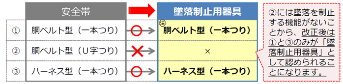 出典:厚生労働省 「安全帯の規格」を改正した新規格「墜落制止用器具の規格」を告示しました